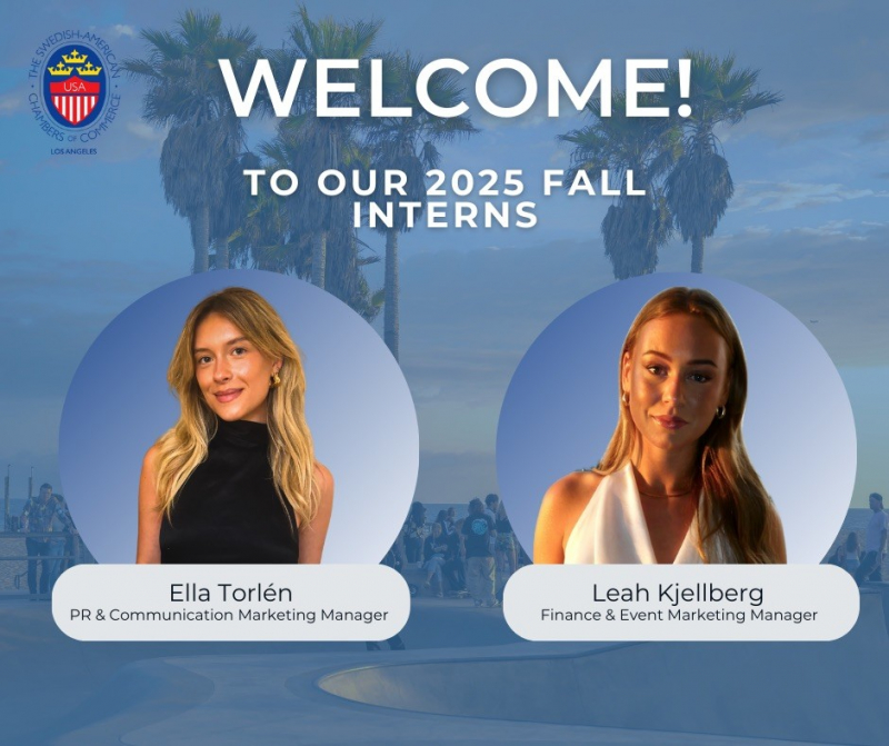 Hi! My name is Ella Torlén and I am originally from Stockholm, Sweden. For the past five years, I have been studying in Uppsala, where I am now completing the final year of my master’s degree. This fall I am joining SACC-LA as a PR & Communication Marketing Manager intern. In this role, I will be working with communications, social media, newsletters, and events, and I look forward to contributing to the Chamber’s mission of strengthening the relationship between Sweden and the U.S. I hope to further develop my skills while also creating valuable opportunities for SACC-LA’s members and network.